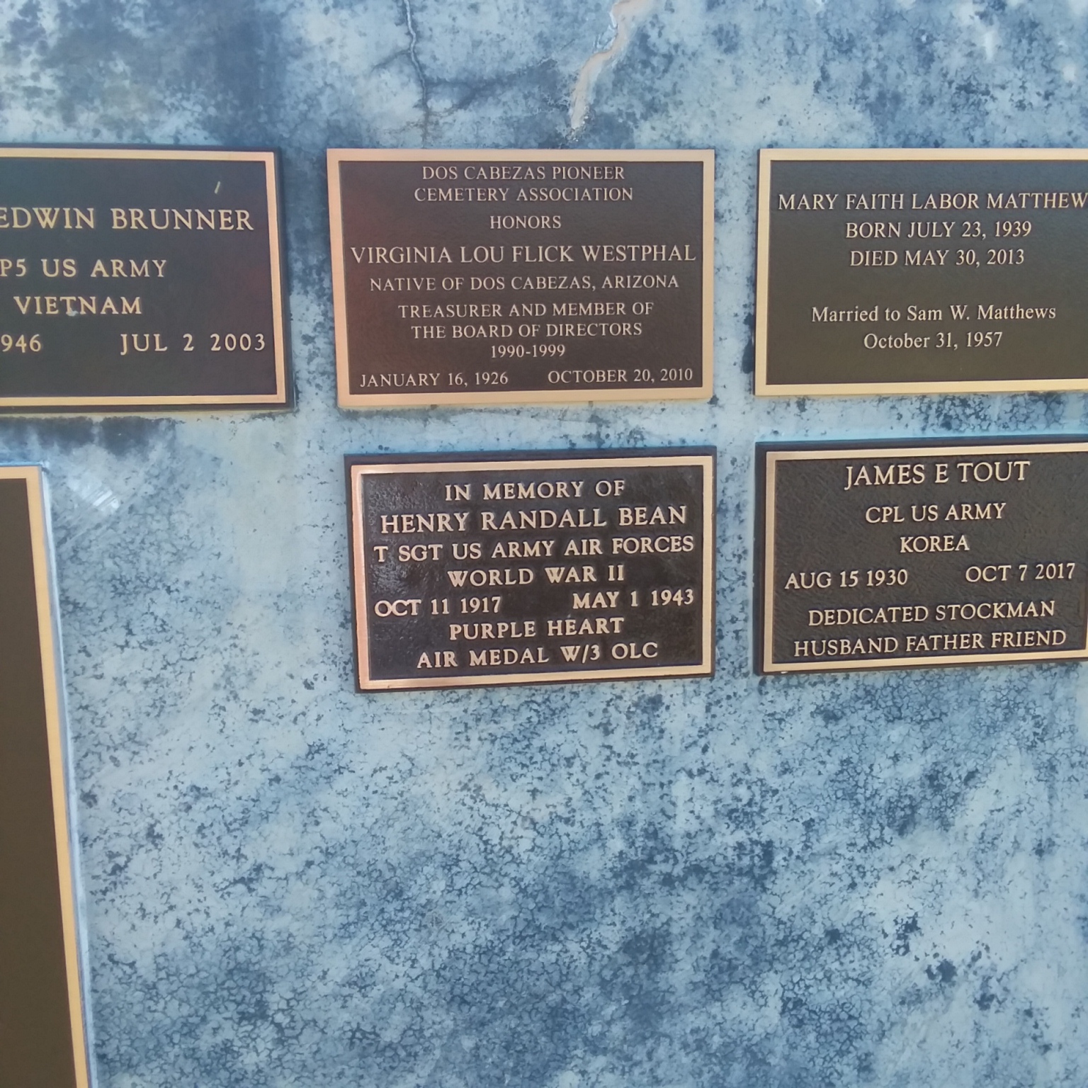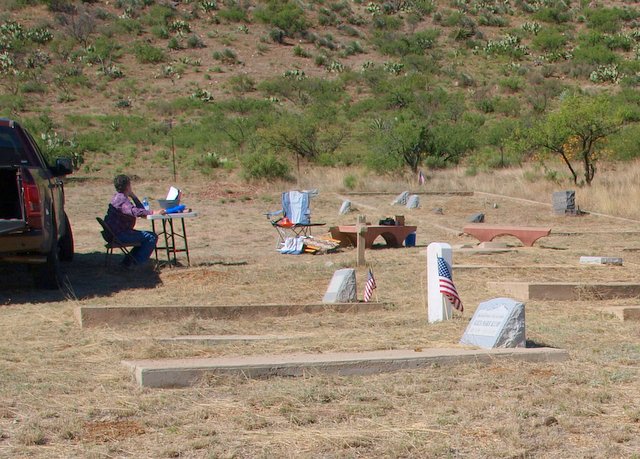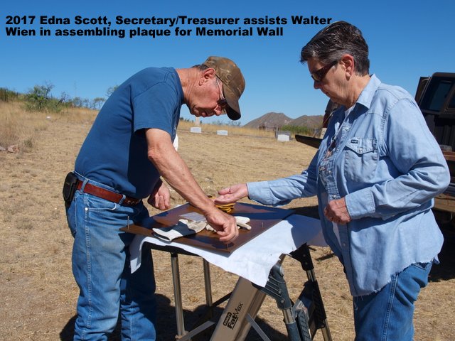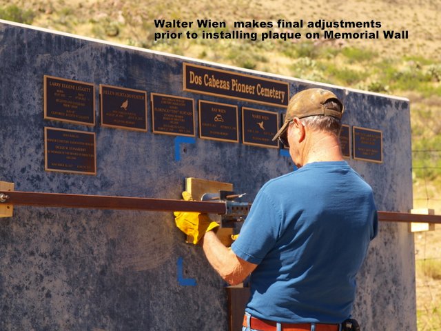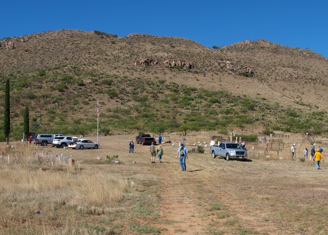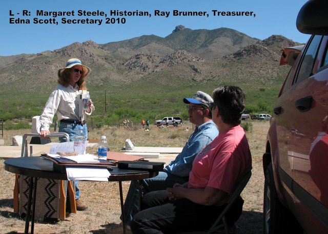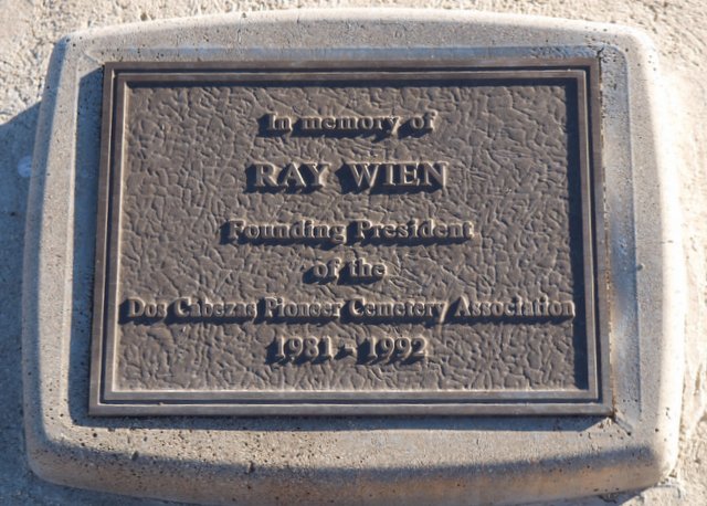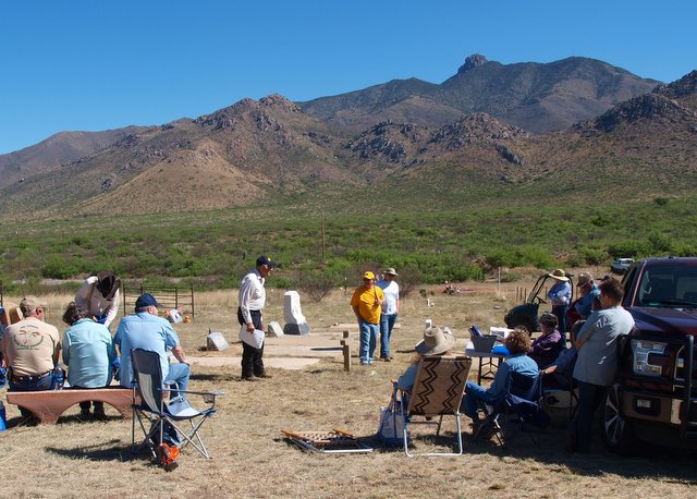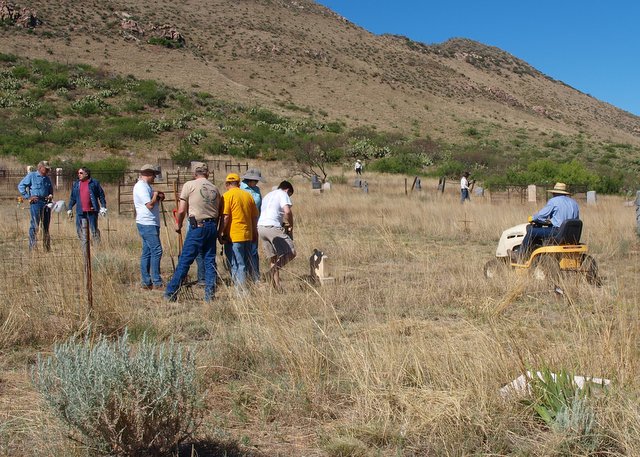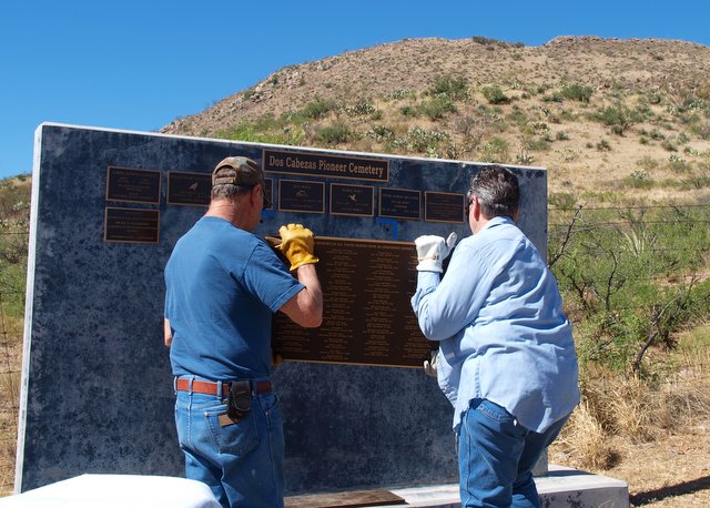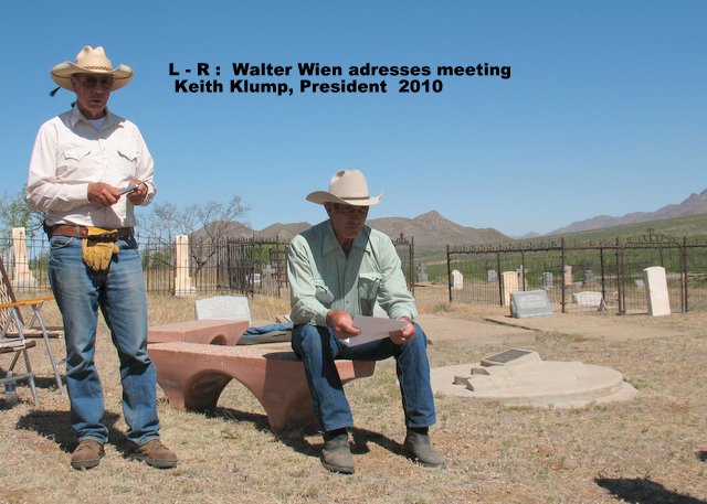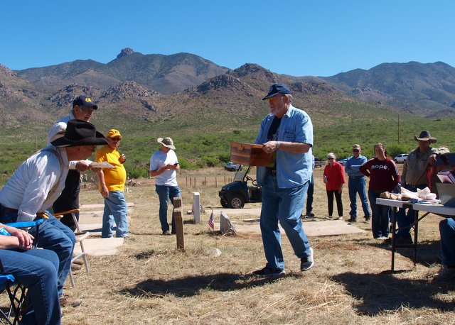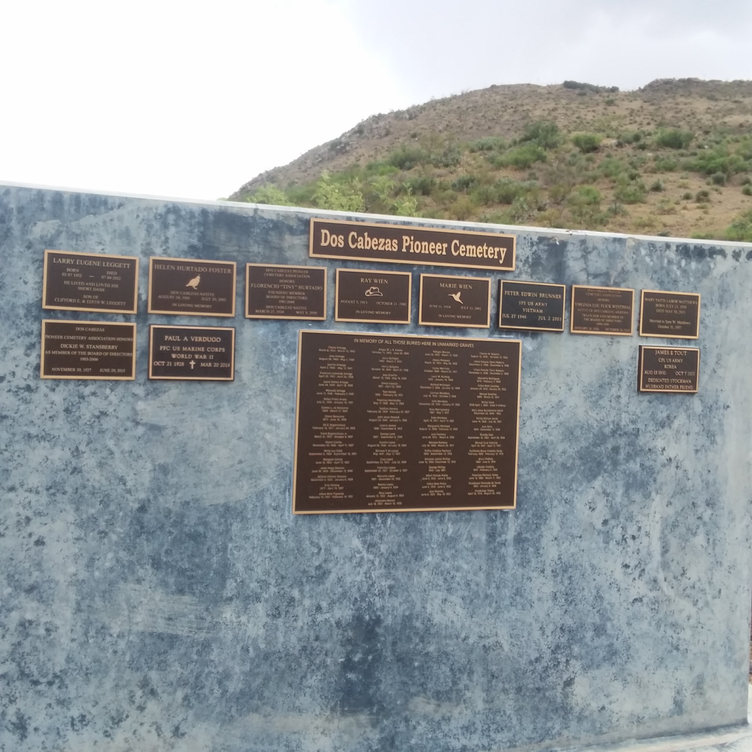 Metal crosses indicate unidentified gravesSix crosses (in foreground) mark unidentified gravesAs volunteers mow grass, unidentified graves can be seen and are then indicated with metal crossKeeping the cemetery tidy is a lot of work for a handful of dedicated volunteersL – R: Phyllis Brooks (Vice-president), Debbie Dalquist (Board of Direceor member), Margaret Steele (Boaard of Director member, Historian and Web Master)Lance Klump presents Walter Wien with a beautiful mesquite box he made as appreciation giftPresident Keith Klump conducts annual meeting (May 25, 2019)Phillip and Regan Klump with rebar cross they have made for unidentified grave sitesEdna Scott, Secretary/Treasurer prepares her recordsprior to annual meetingsVolunteers visit and clean up, Dos Cabezas Pioneer Cemetery, May 25, 2019Folks visit and participate in clean-up day (May 25,2019)Metal crosses indicate unidentified gravesSix crosses (in foreground) mark unidentified gravesAs volunteers mow grass, unidentified graves can be seen and are then indicated with metal crossKeeping the cemetery tidy is a lot of work for a handful of dedicated volunteersL – R: Phyllis Brooks (Vice-president), Debbie Dalquist (Board of Director member), Margaret Steele (Boaard of Director member) Lance Klump presents Walter Wien with a beautiful mesquite box he made as appreciation giftPresident Keith Klump conducts annual meeting (May 25, 2019)Phillip and Regan Klump with rebar cross they have made for unidentified grave sitesEdna Scott, Secretary/Treasurer prepares her recordsprior to annual meetingsVolunteers visit and clean up, Dos Cabezas Pioneer Cemetery, May 25, 2019Folks visit and participate in clean-up day (May 25,2019)